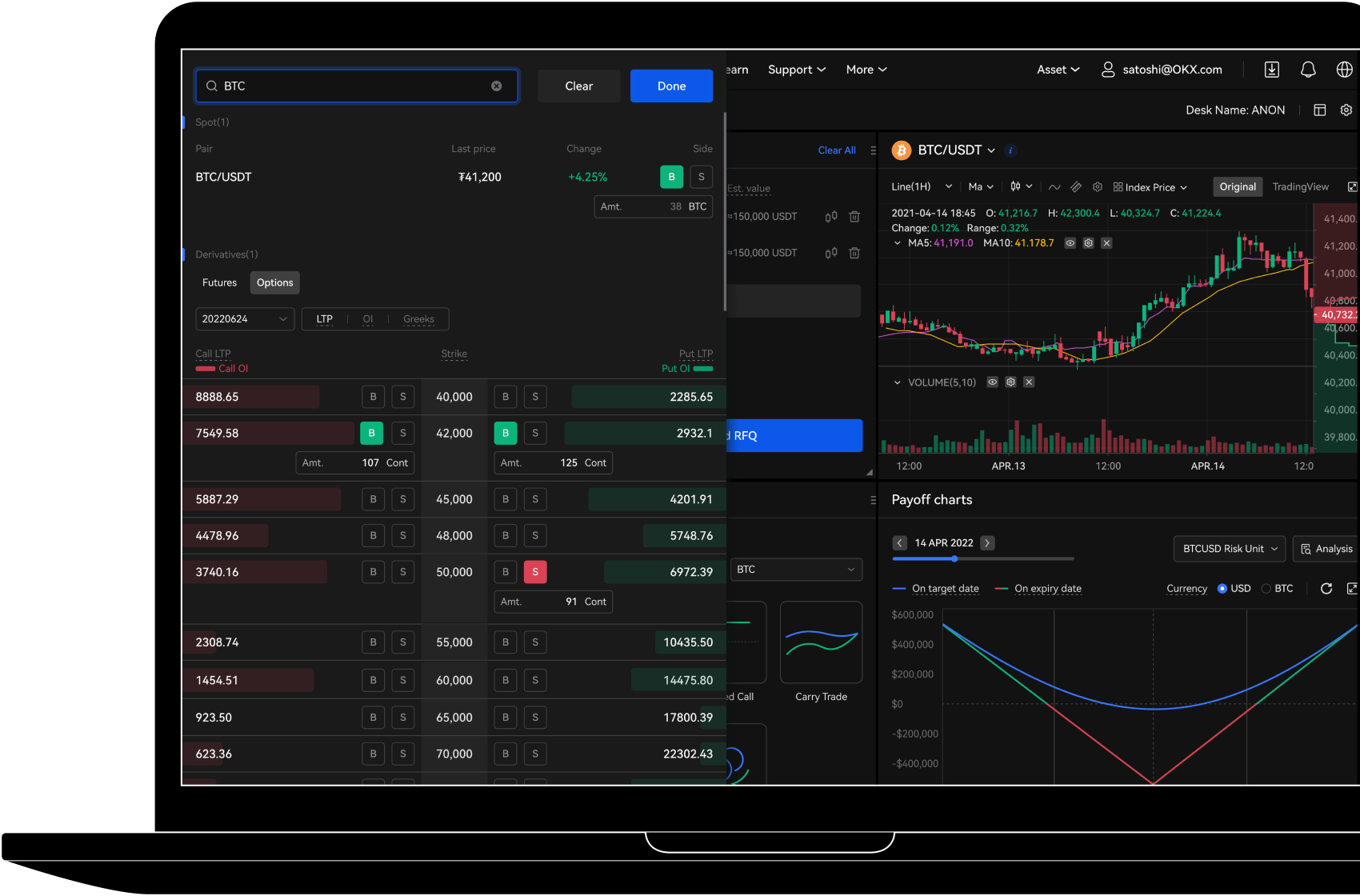 Instantly trade spot OTC, futures spreads, and options strategies at the price you want.